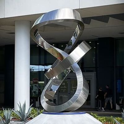 This captivating stainless steel ribbon sculpture redefines modern minimalist art. Crafted from high-grade stainless steel with a sophisticated mirror or matte finish, its fluid, dynamic form creates a sense of graceful movement, as if a ribbon is frozen in a gentle breeze.