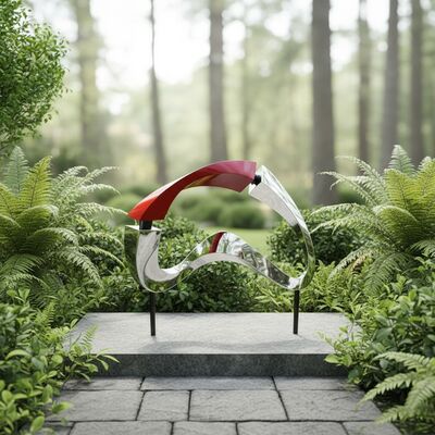 sEclipse Flow is an abstract metal sculpture crafted in high-quality stainless steel, combining polished silver surfaces with a bold red accent. The fluid, balanced form expresses movement and tension, making it a striking focal point for modern gardens, courtyards, and architectural landscapes. This stainless steel abstract sculpture reflects light beautifully and delivers a contemporary artistic statement with lasting durability.